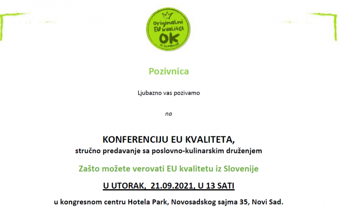 NAJAVLJUJEMO STRUČNU KONFERENCIJU ZAŠTO MOŽETE VEROVATI EU KVALITETU IZ SLOVENIJE